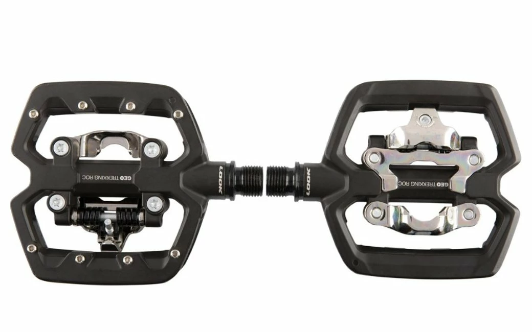 Pédales plates ou pédales automatiques ? Cette question ne se pose plus avec la GEO TREKKING ROC. Cette pédale composée d’aluminium à la robustesse impressionnante embarque une face automatique compatible SPD et un autre côté plat, principalement destiné à un usage “off-road”, grâce à la présence des 8 picots qui permettent une accroche extrême. Son design concave lui confère une large surface d’appui de 84 mm pour un poids léger dépassant à peine les 200 grammes.